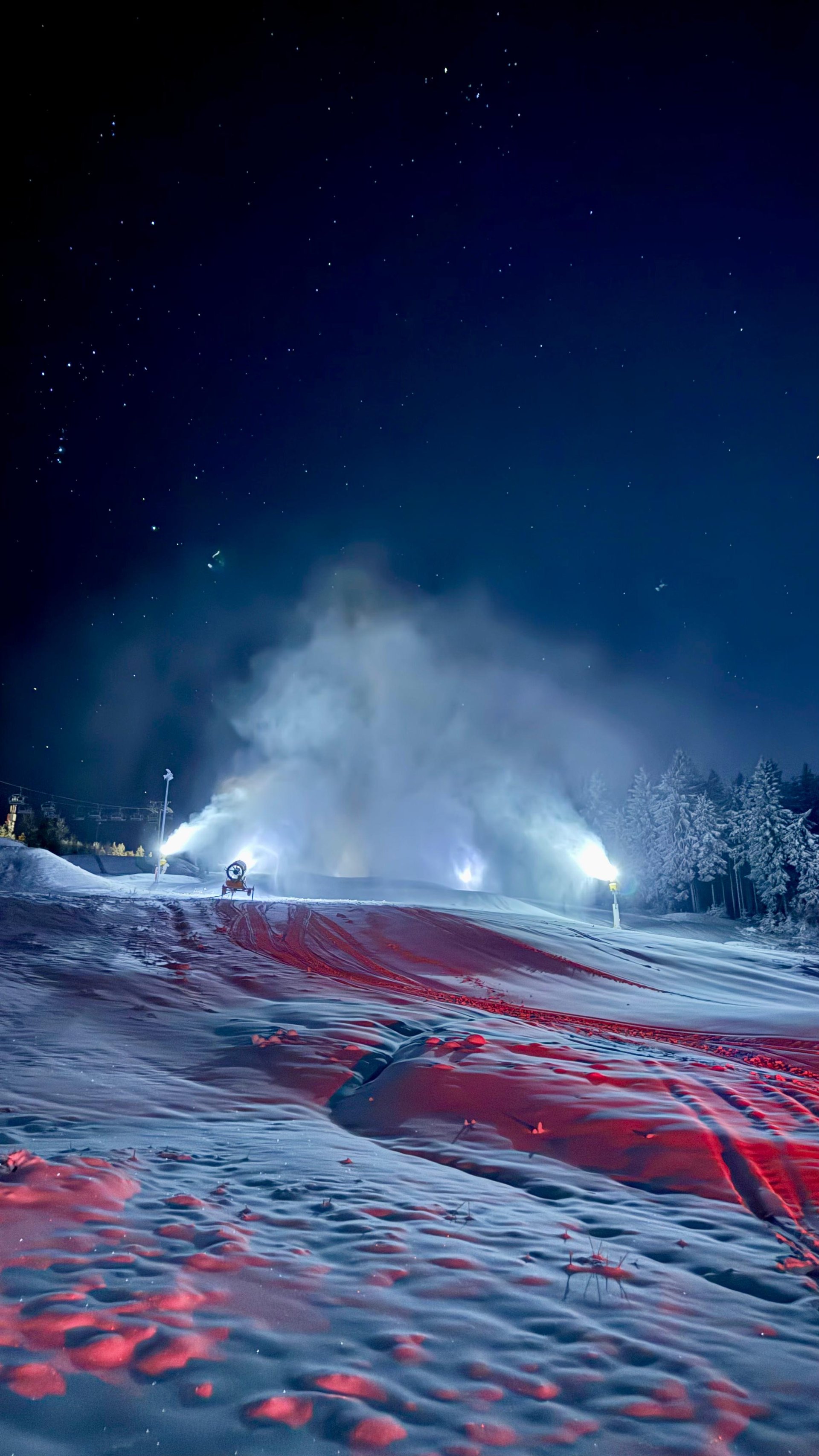 Caption: With temperatures remaining below freezing, the nights were also used for snowmaking. Photo: Marcus König